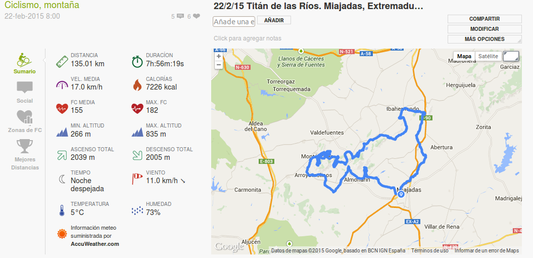Tras los primeros encuentros, concentración en Alía, donde conocí a los nuevos compañeros de equipo: César, Macías, Denche, Pachío, Sergio, Dominique, Gonzalo, Miguel, Nando y primer repaso al calendario de 2015, con el primer objetivo deportivo del año, Miajadas, 22 de febrero. Este pasado domingo.