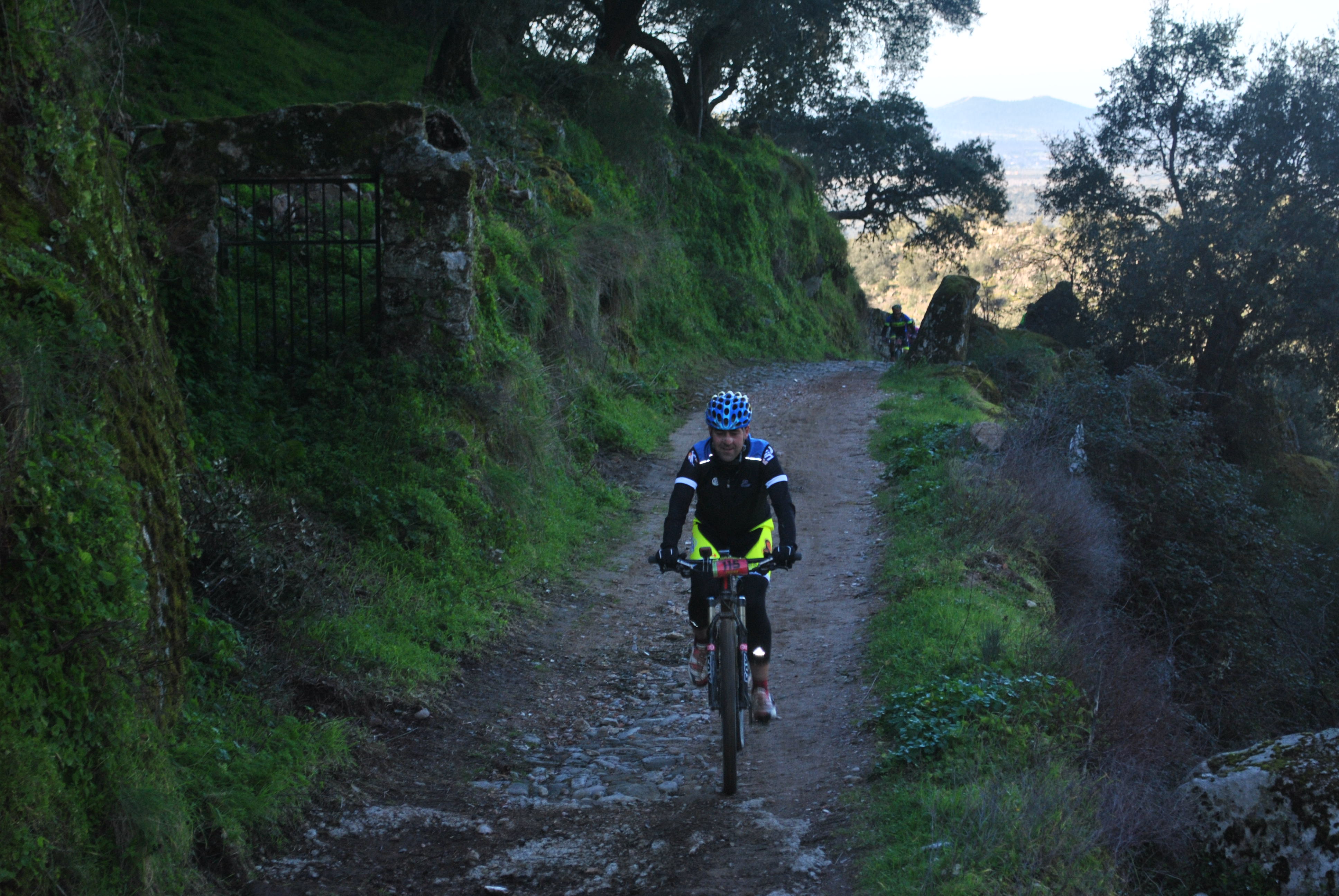 Paso por los castañares (sin haber parado en el avituallamiento de la Plaza), segundo punto de control, paso por la plaza de toros, rotonda, canapé de Montánchez y bajada por la zona de «Valhondo». Allí ya iba prácticamente solo, salvo por dos chicos del GR100, que se iban esperando. Finalmente quedaron como 3ª pareja.