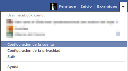 1. Entramos, haciendo click en la flecha que encontramos en la parte superior derecha, en la franja azul, como en la imagen, dando, posteriormente a la opción «Configuración de la Cuenta»